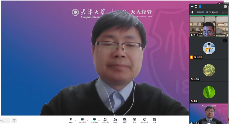 2025年3月2日上午,我院邀请天津大学运营与供应链管理系主任、讲席教授、博士生导师、国家级领军人才、教育部青年长江学者刘伟华教授通过线上腾讯会议举办了国家基金申请辅导交流会,会议由曹飞副院长主持,WilliamHill陈浩东副院长等近20位教师参加会议。